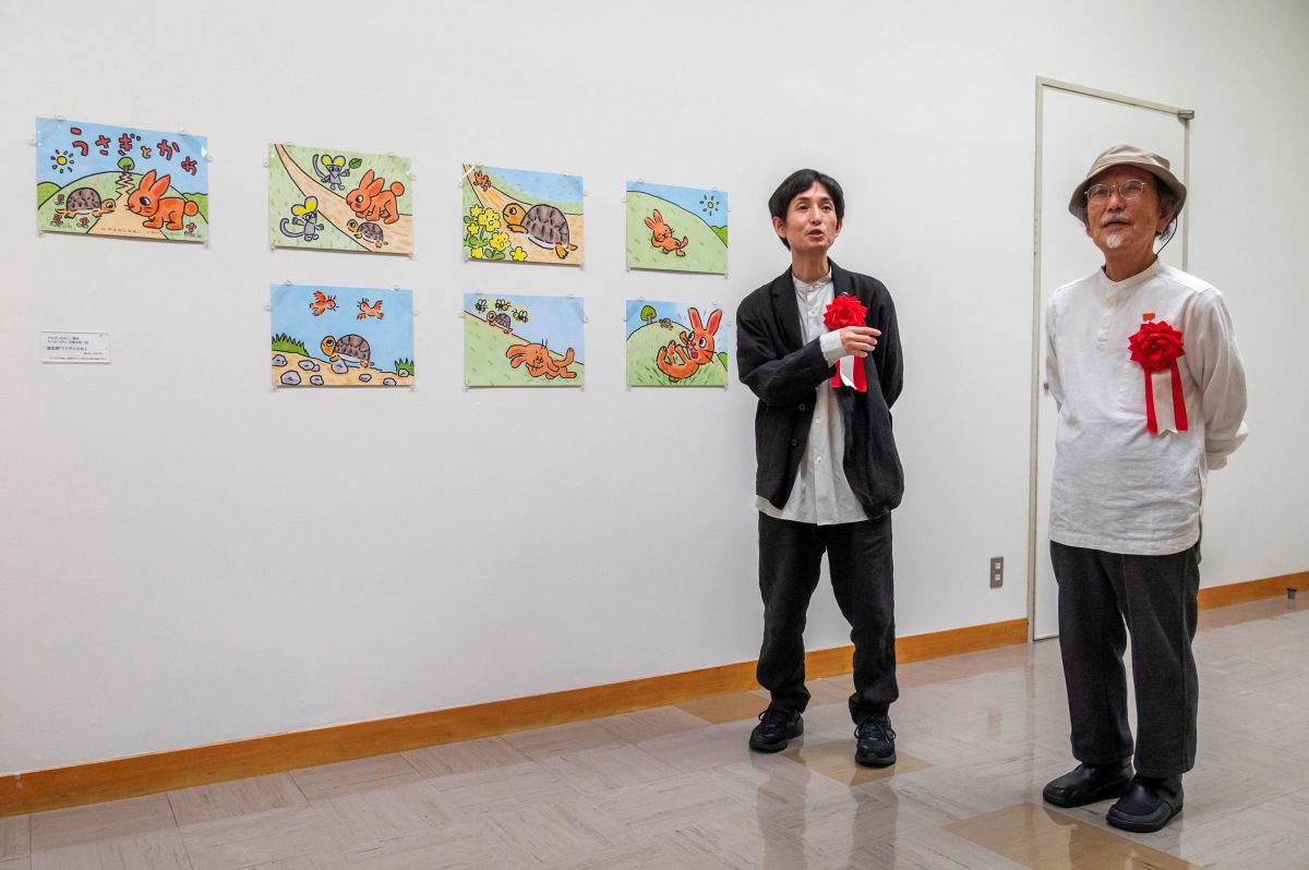 10月16日、特別展「やべみつのりと矢部太郎 ~『ぼくのお父さん』のふるさと・倉敷」の内覧会を開催しました。お二人による作品解説が行われ、親子の楽しい掛け合いに会場は終始笑顔に包まれました。内覧会の様子を写真でご紹介します。