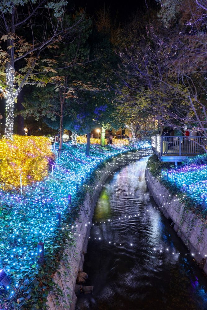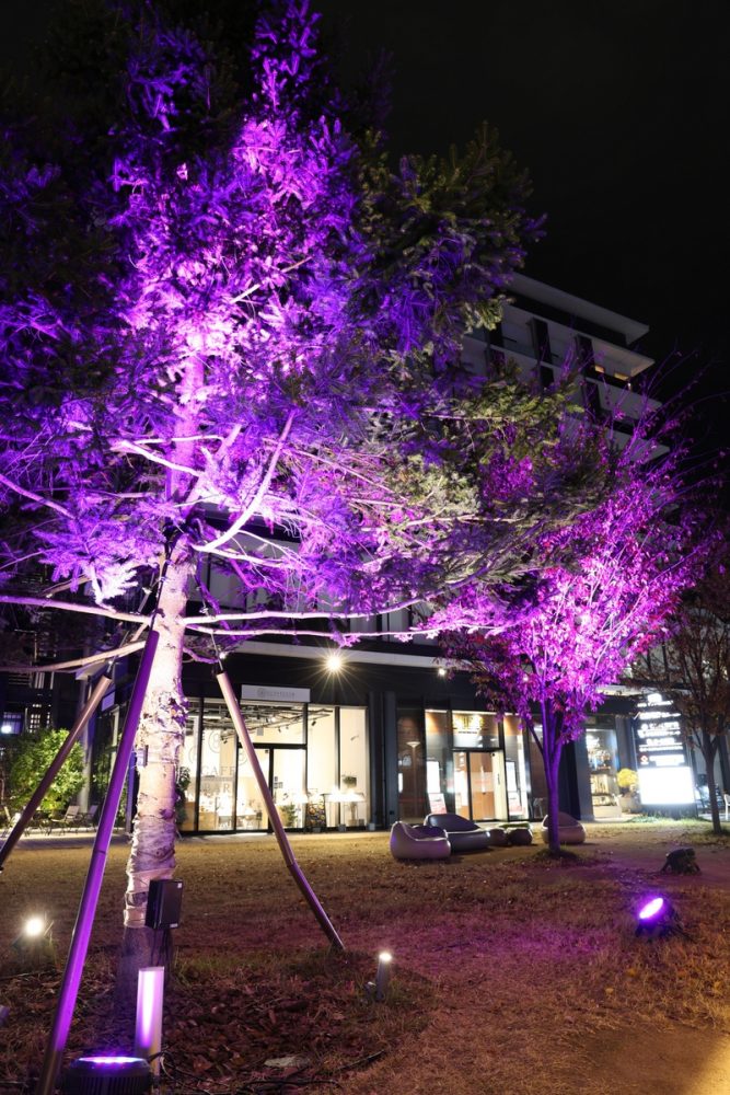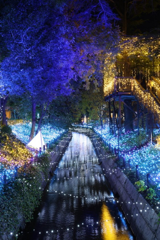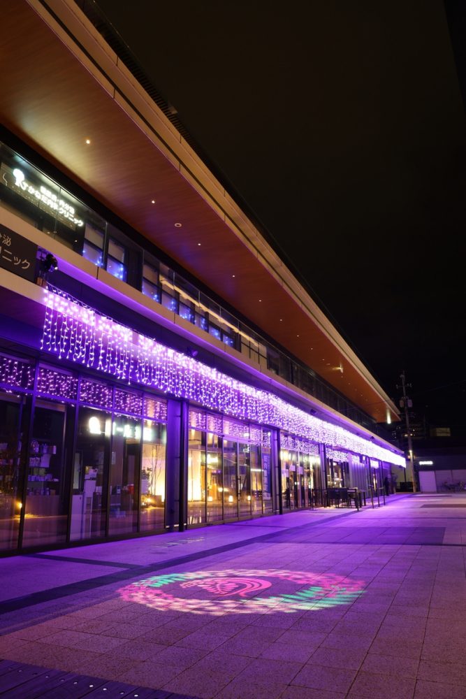 市花である藤ときらめきを掛け合わせて、紫色のイルミネーションが藤色並木を幻想的に演出しています。