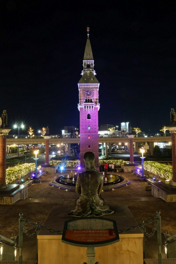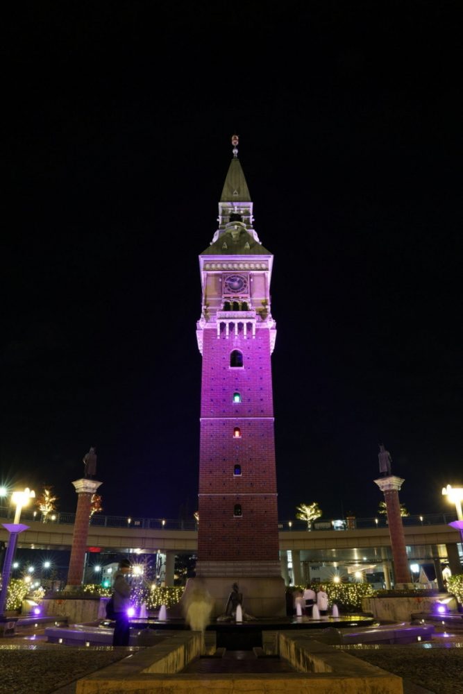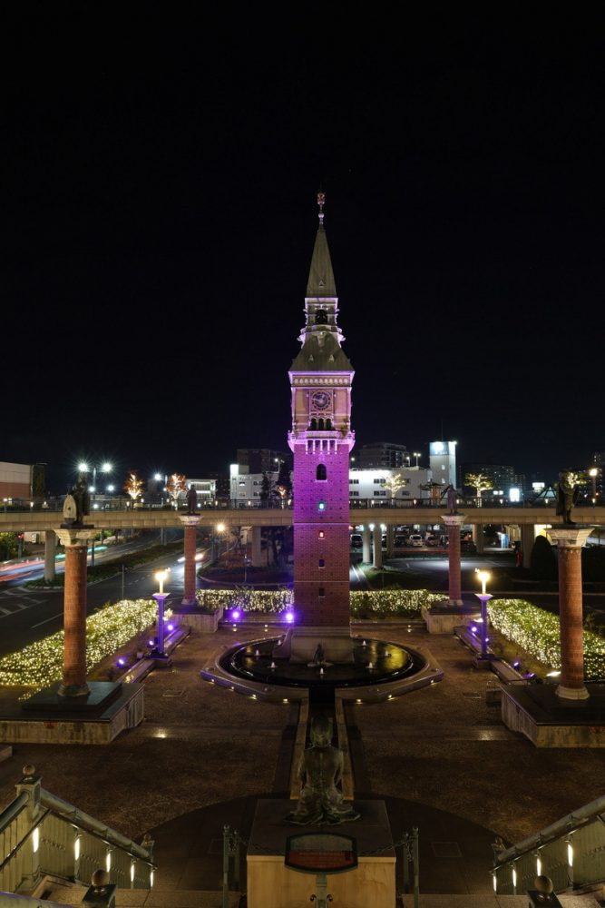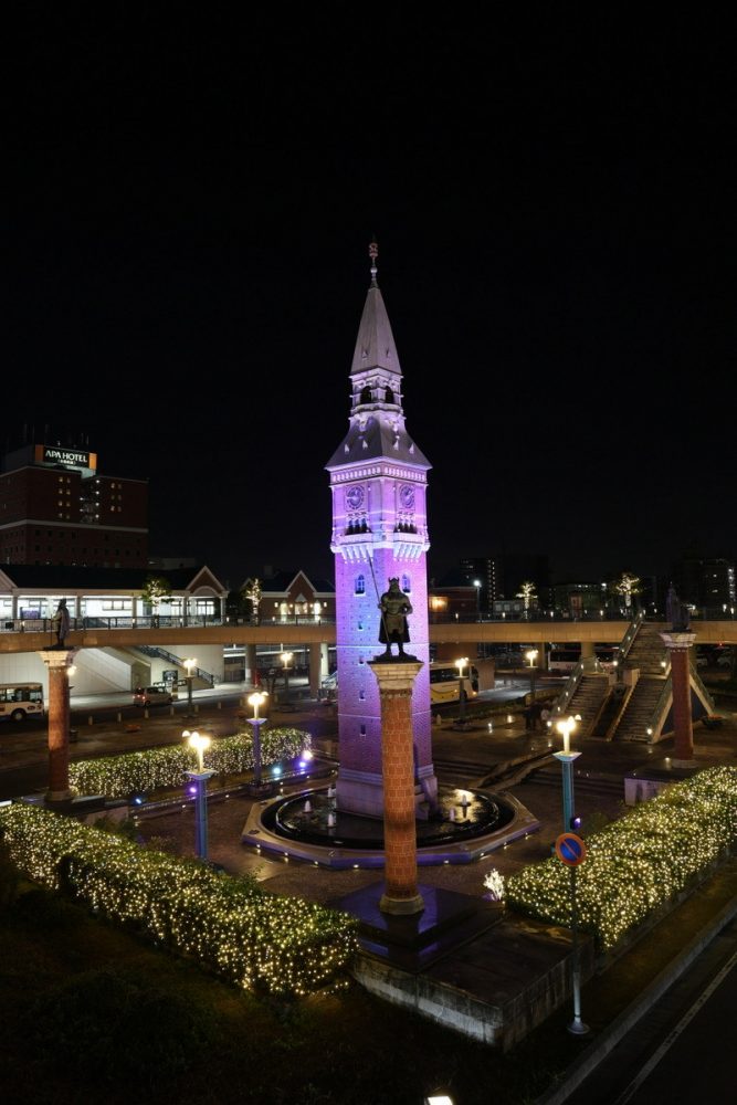 時計台はオーロラをイメージしたカラーライトアップしています。
