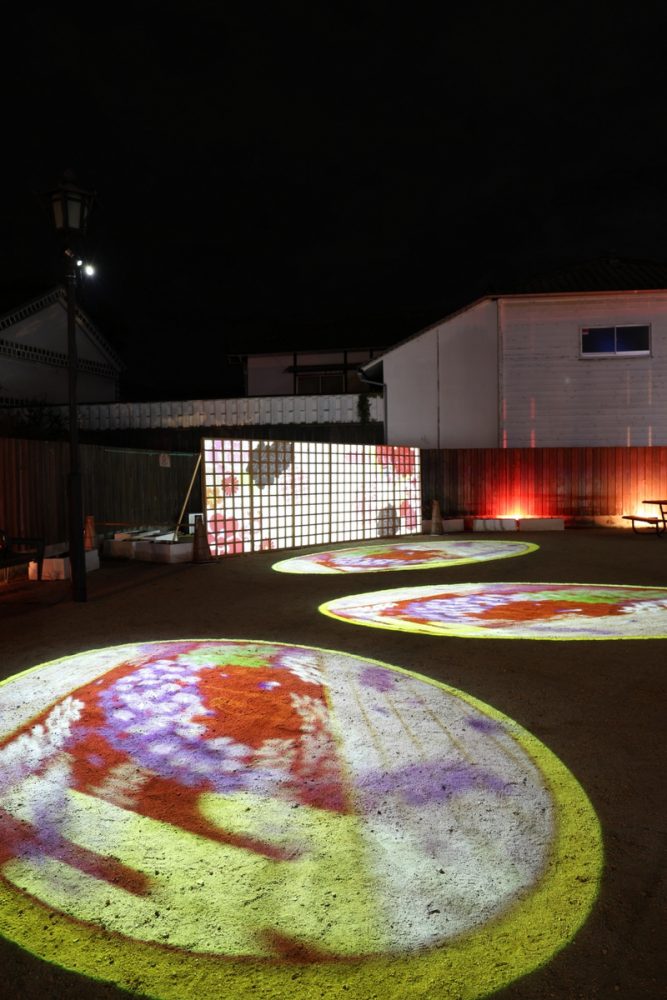 障子型の展示にプロジェクションマッピングの映像演出を行っています。