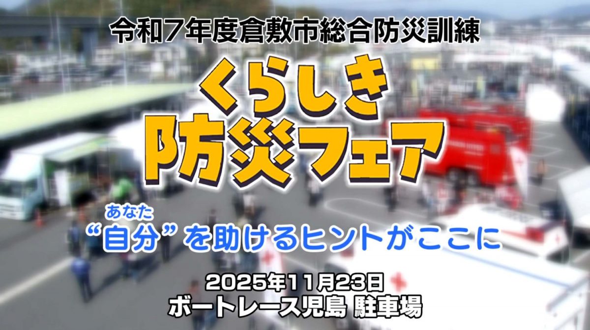 11月23日にボートレース児島駐車場で行ったくらしき防災フェアの様子をお届けします。